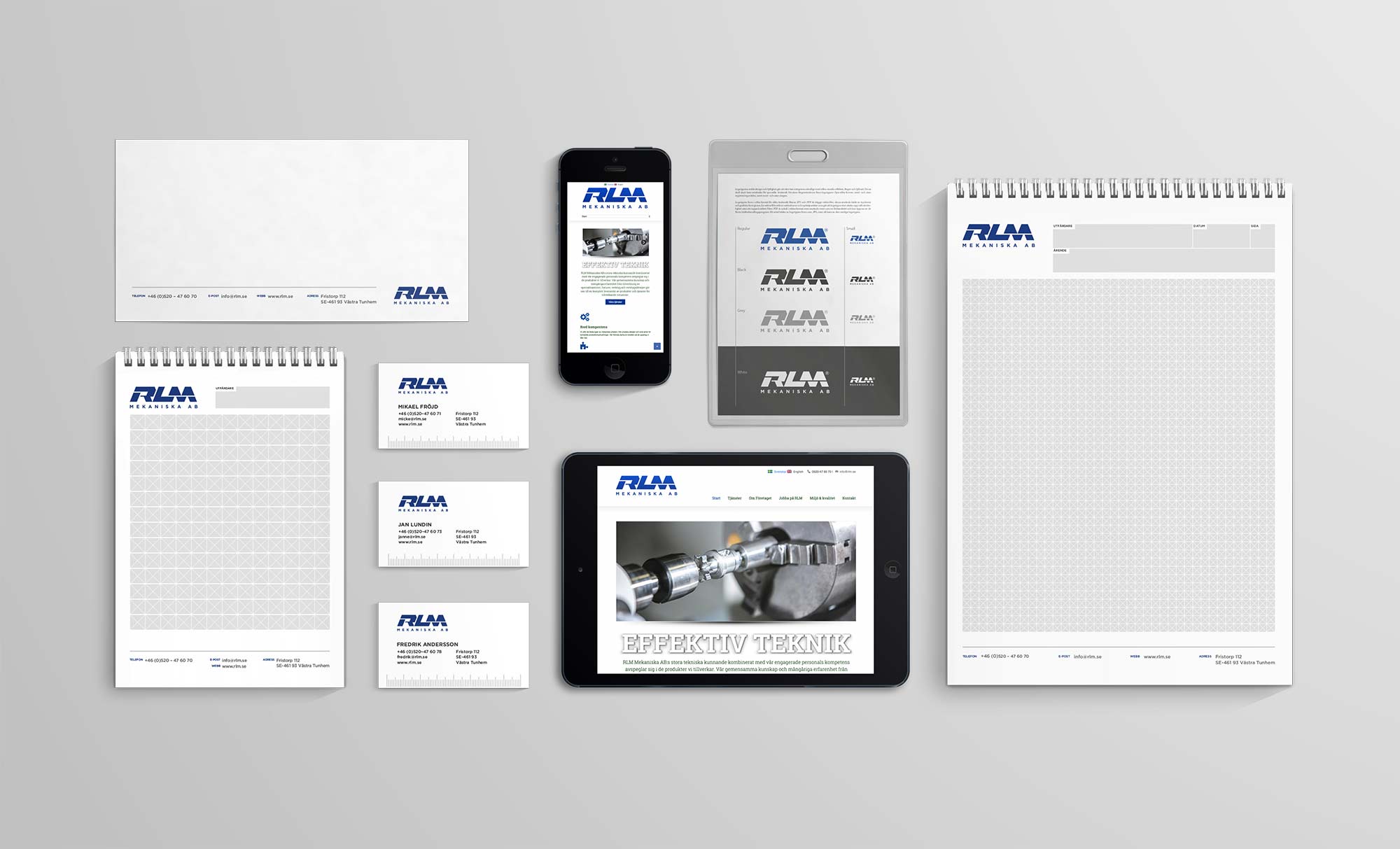 RLMs logotyp är från början ritat för hand, först med penna och papper, sedan digitaliserad i vektorformat vilket gör att logotypen aldrig tappar skärpa. När man formger en logotyp är det viktigt att man planerar för hur den ska användas. Logotypen måste alltid fungera i olika format, på ljusa och mörka bakgrunder, samt utan färg. Ju enklare en logotyp är designad, desto lättare är den att använda som t.ex. brodyr eller gravyr. Se fler logotyper här.