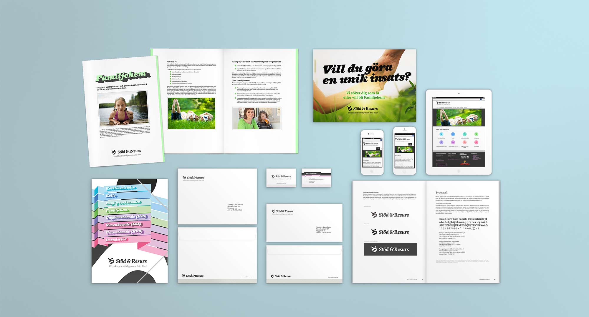 Stöd & Resurs arbetar med stödinsatser för individer med neuropsykiatriska funktionsnedsättningar runt om i Stockholm och Uddevalla. Bolaget tillhandahåller tjänster i ett brett spektra vilket krävde en tydlig grafisk struktur. En grafisk identitet, logotyp, trycksaker, annonsmaterial och hemsida har designats.